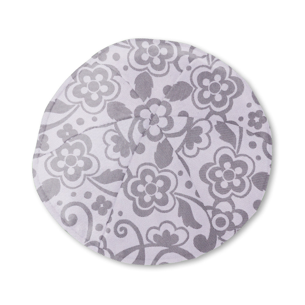You'll stand out from the crowd wearing these gala floral icons of warm grey woven in silvery white silk. A great choice for any special occasion.