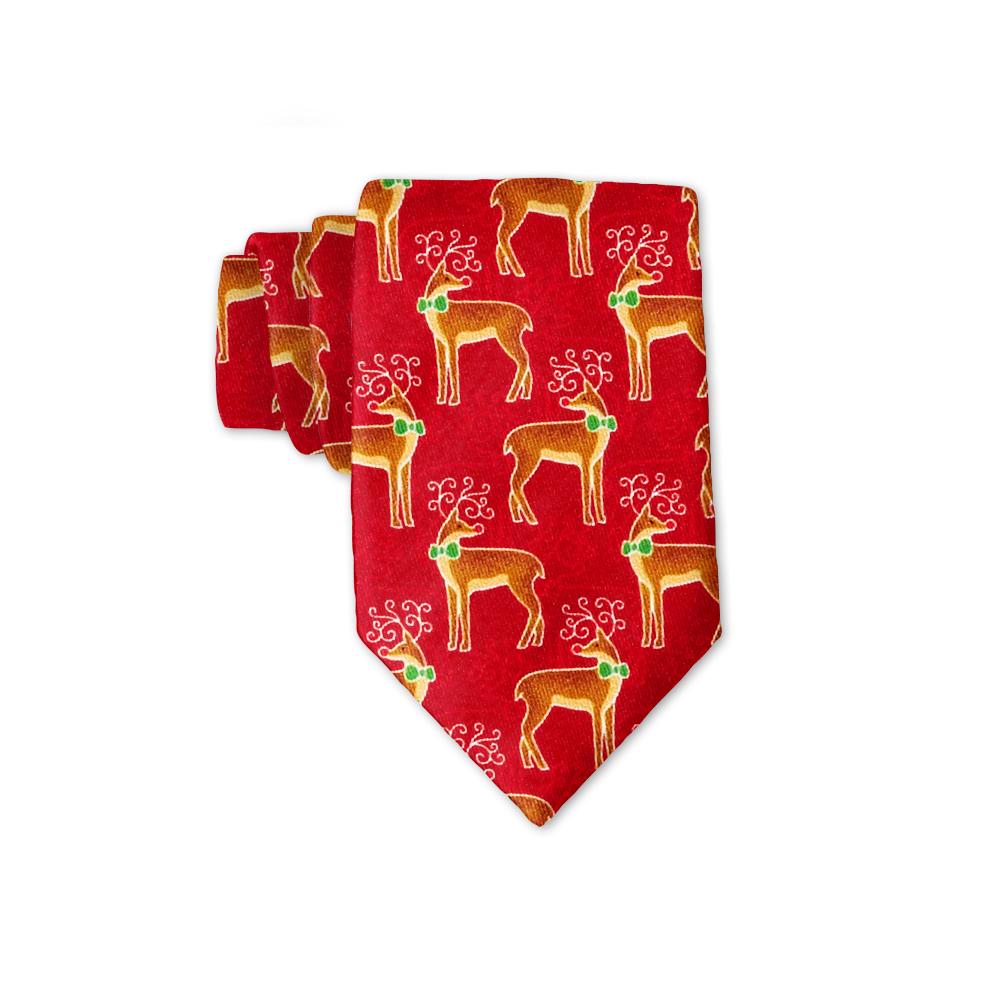 We're not sure if these handsome fellows are reindeer or not, but they are dressed in holiday style in their splendid green bow (we think BEAU) ties on cheerful red silk twill.