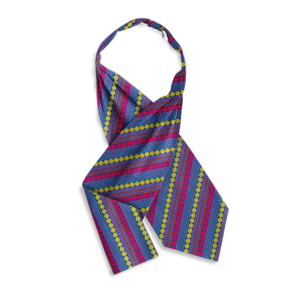The Dotlan patterned free-fold cravat features three stitched center pleats that allow luxurious drape in front without fabric bulk at the nape of your neck. It is completely reversible and sized for a perfect fit. May require a stick-pin.
