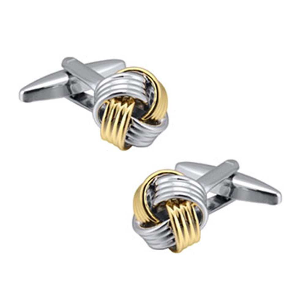 These handsome cufflinks feature a classic knotted pattern in a combination of silver and golden tones.