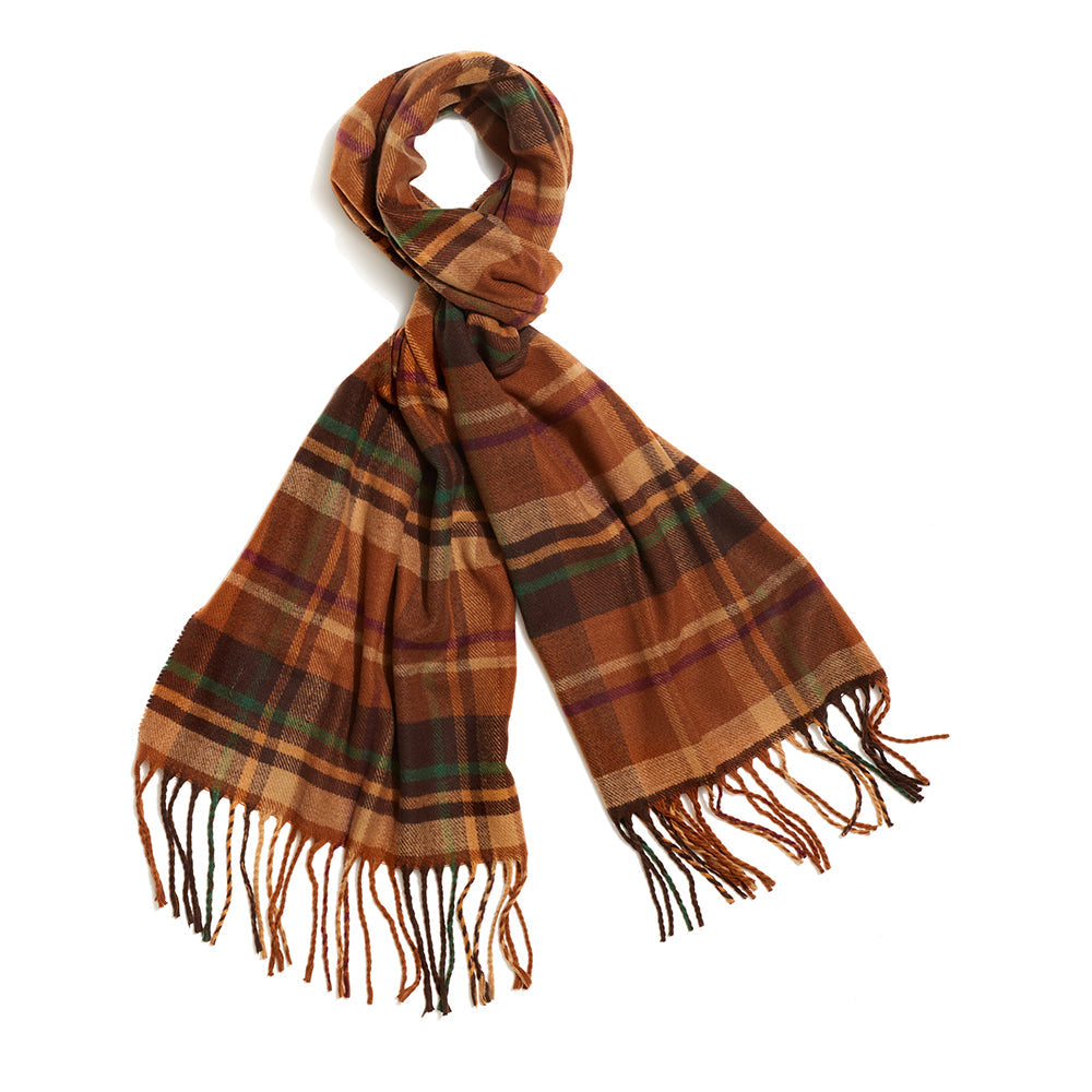 This oh-so-soft 100% cashmere scarf features a beautiful plaid in shades of brown crisscrossed with green and red. Wear it with your coat to keep warm or add it to an outfit for some extra style. Regardless of your sartorial choice, this 12" x 72" fringed scarf will be a welcome addition to your winter wardrobe.