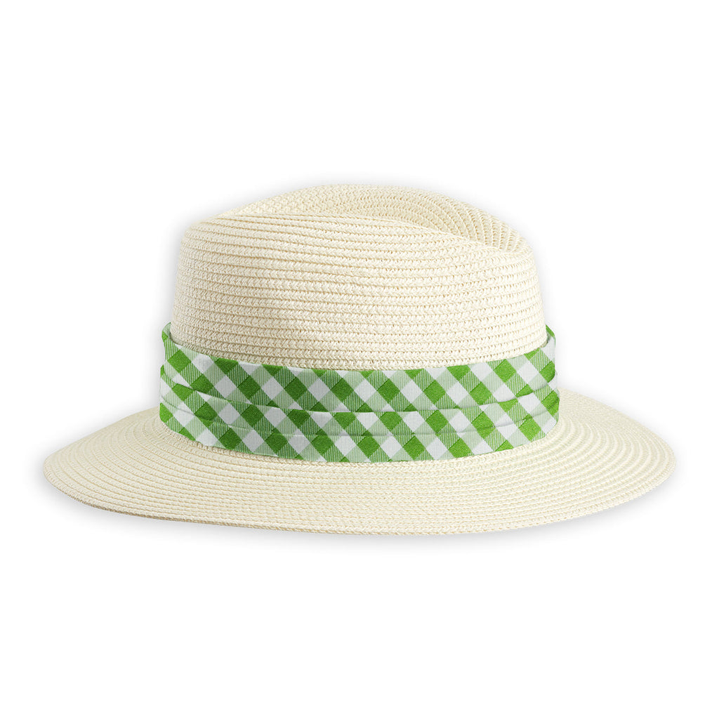 Our handmade hat bands are 29 inches long, 1.75 inches wide, feature stylish pleats, and are finished with small fabric picks, so they're adjustable in size and easy to move from one hat to another. A snazzy addition to your head gear