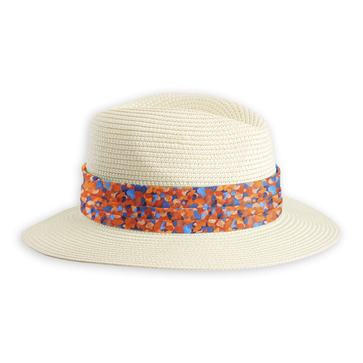 Our handmade hat bands are 29 inches long, 1.75 inches wide, feature stylish pleats, and are finished with small fabric picks, so they're adjustable in size and easy to move from one hat to another. A snazzy addition to your head gear
