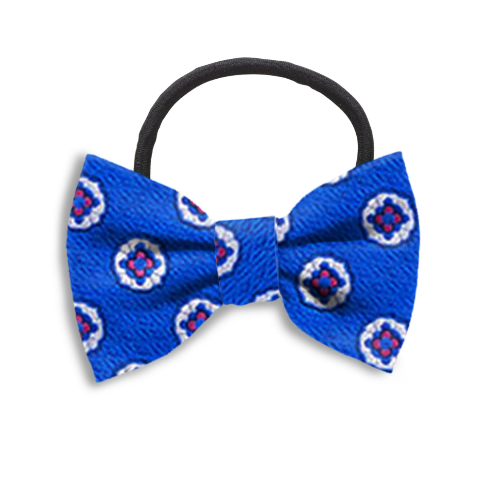 No need to leave women out of your Beau Tie family. Our hair bows are beautiful and practical - with the Florence Blue bow measuring about 3 inches wide and attached to pony tail holder with a circumference of 4-3/4 inches.