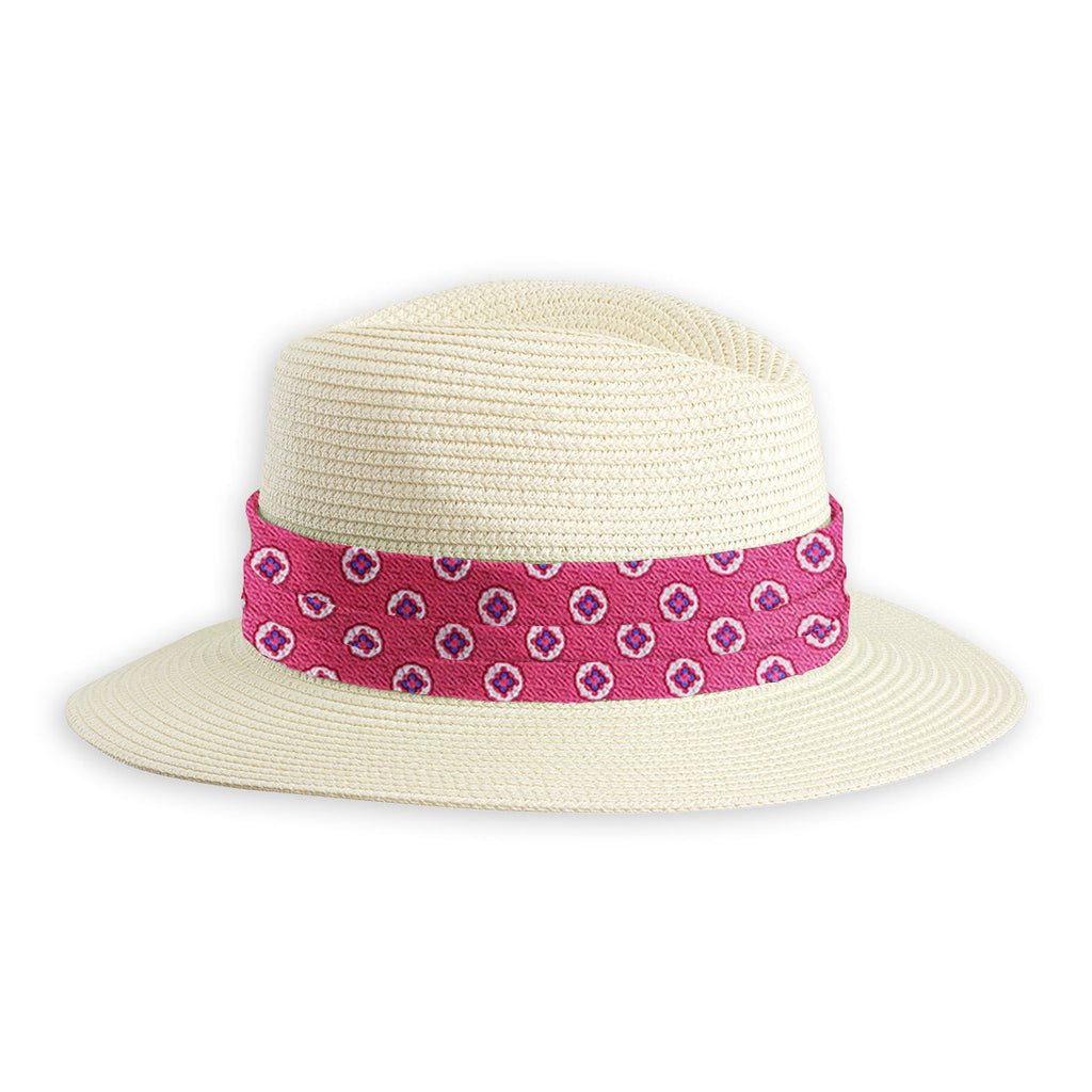 Our handmade hat bands are 29 inches long, 1.75 inches wide, feature stylish pleats, and are finished with small fabric picks, so they're adjustable in size and easy to move from one hat to another. A snazzy addition to your head gear