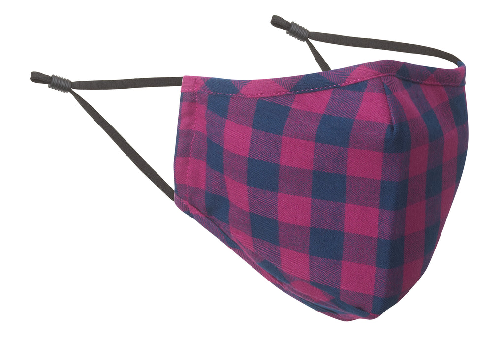 Cover up and look good in this oh-so-comfortable face mask in a lumberjack plaid of burgundy and dark blue.
