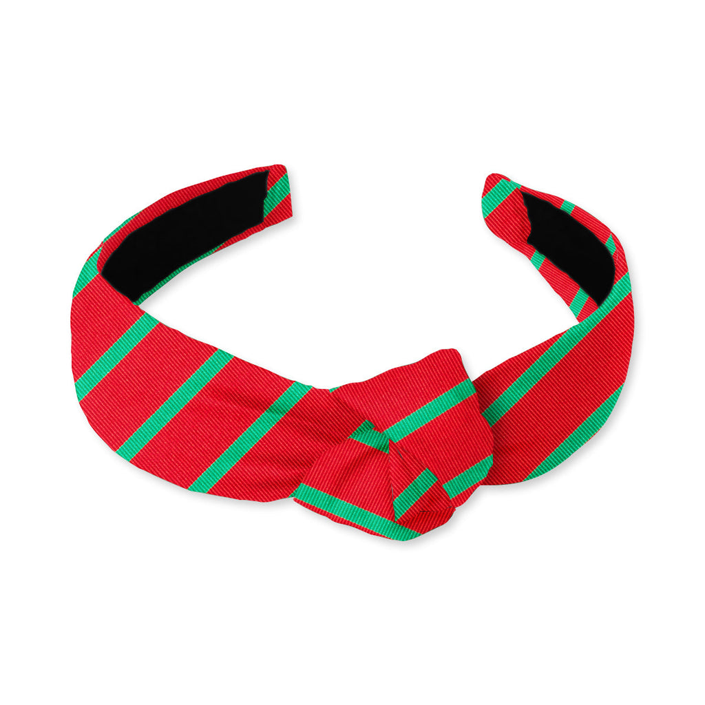 Broad swaths of woven red silk are instespersed with cheerful green stripes. A great choice for the holidays and well beyond.