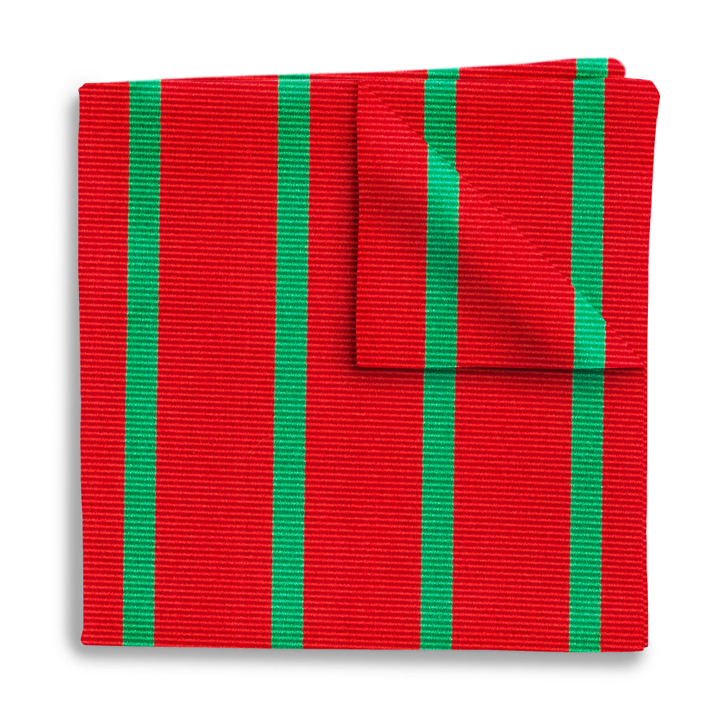 Broad swaths of woven red silk are instespersed with cheerful green stripes. A great choice for the holidays and well beyond.