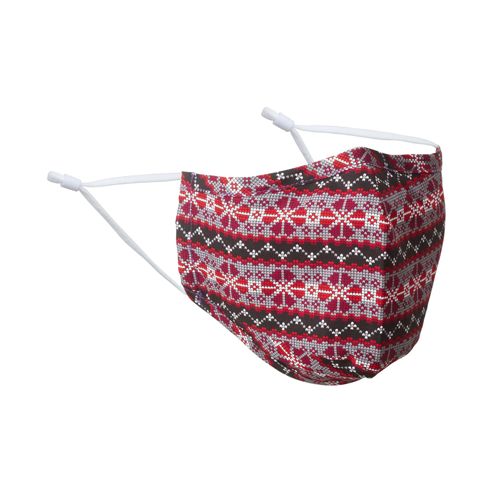 Cover up and look good in this triple-layer, all-cotton face mask that looks like handcrafted needlework with its stripes and patterns in shades of grey, red, pink and black.