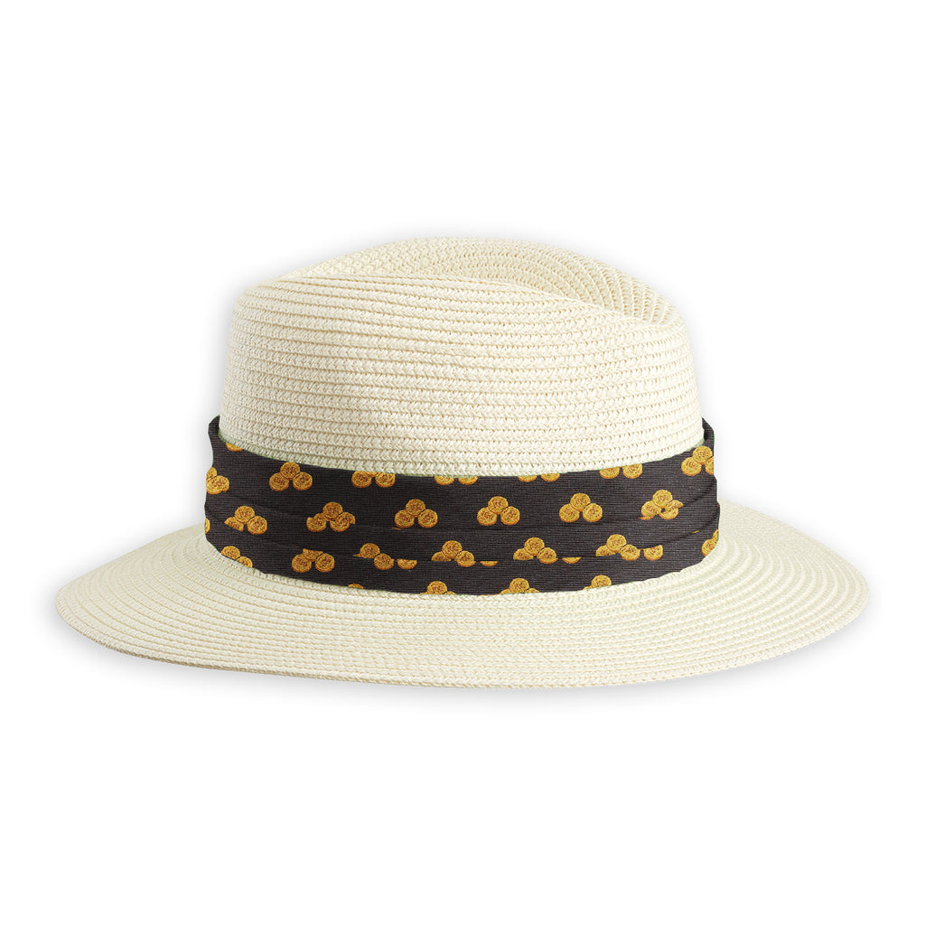 Our handmade hat bands are 29 inches long, 1.75 inches wide, feature stylish pleats, and are finished with small fabric picks, so they're adjustable in size and easy to move from one hat to another. A snazzy addition to your head gear
