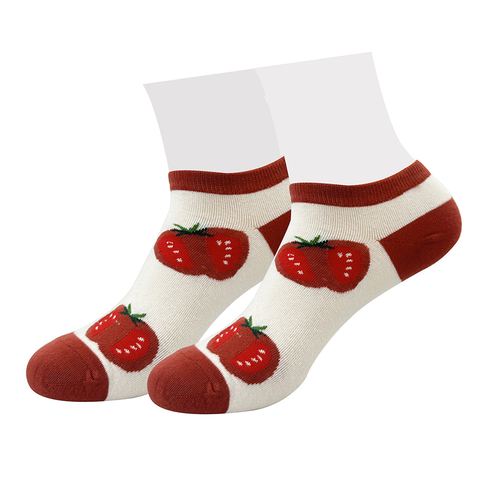 Who needs Big Boys when your can have Girl's Best tomatoes that look good enough to eat adorning these ivory ankle socks? Brick-red tops, toes and heels. Yum.