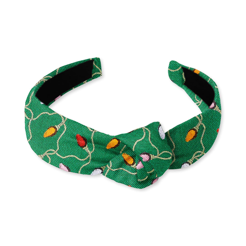 An homage to every holiday movie ever that featured decorating misadventures with colored lights, this totally fun design is covered with iconic bulbs on golden wires, all woven in a lightly ribbed green silk.