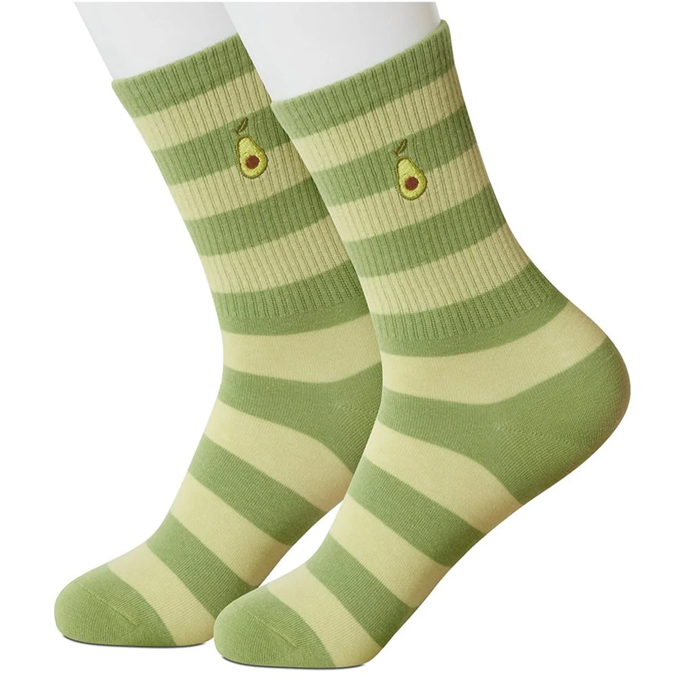 Subtly embroidered avocados on each of these green striped socks will add a little pizzazz to your pedal extremities.