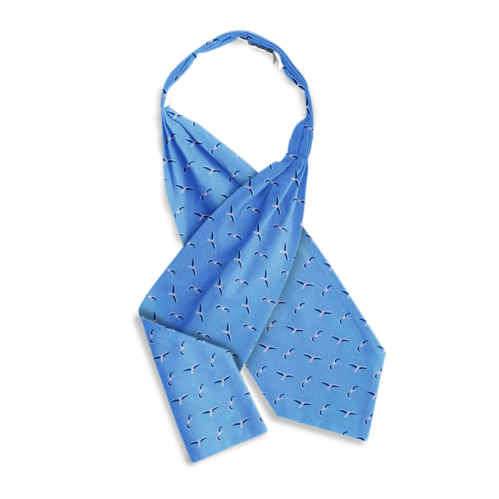 The Gull Island patterned free-fold cravat features three stitched center pleats that allow luxurious drape in front without fabric bulk at the nape of your neck. It is completely reversible and sized for a perfect fit. May require a stick-pin.
