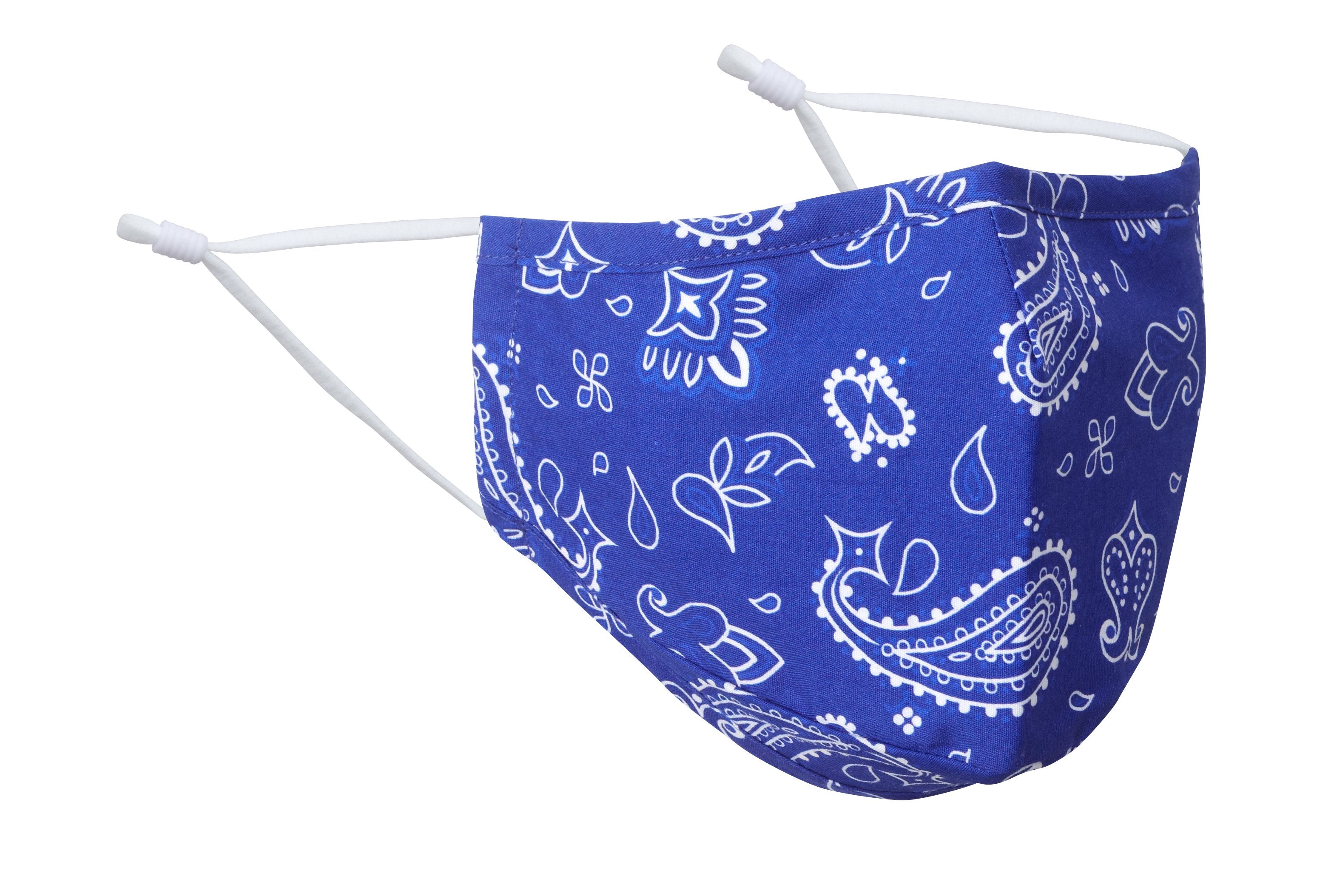 Been wearing a bandana to cover up? Step it up a notch with this oh-so-comfortable face mask with a classic white paisley pattern on blue.