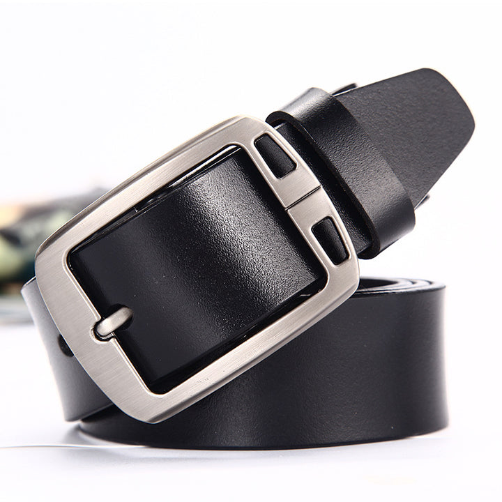 Practical and handsome, this black leather belt is finished with stylish brushed metal frame-style hardware. Each measures 1.5" in width and is available in six lengths. For the best fit, choose the next larger size over your trouser's waist size.