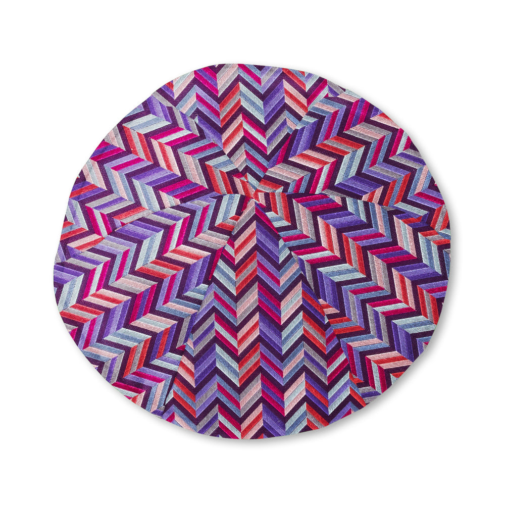 An eye-catching herringbone pattern in shades of purple, blue and pink woven silk is sure to attract only positive attention.