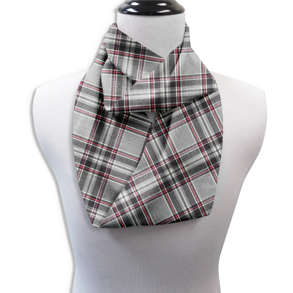 A lovely Italian wool tartan in shades of grey and black, crisscrossed with white and pink, will be a welcome addition to your cool-weather wardrobe.