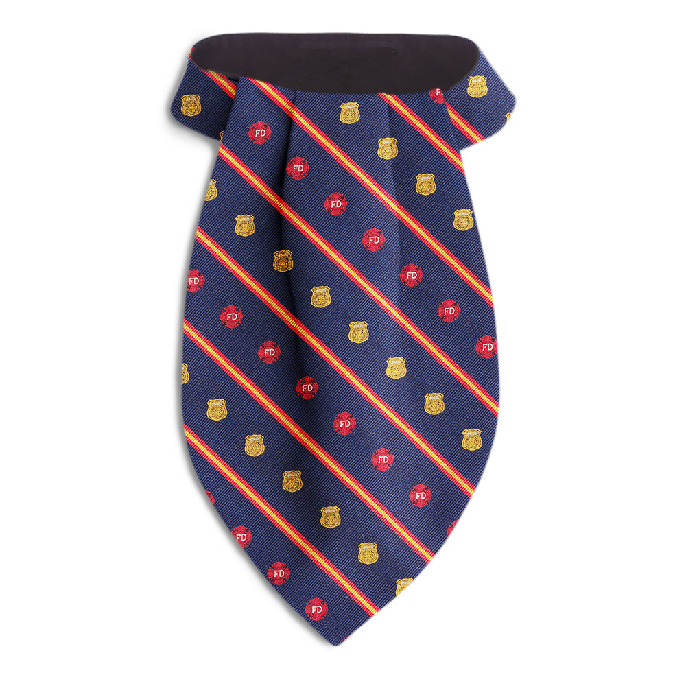 Our hats are off to all the unsung heroes of our communities and this navy blue woven silk with Fire Department and Police insignia between red and gold stripes was designed in their honor.