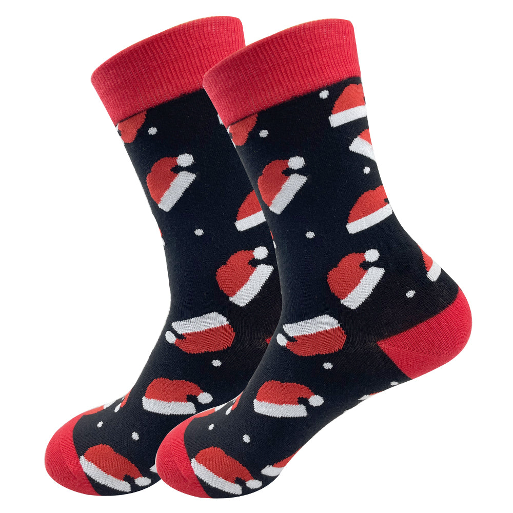 Have some fun with these black socks and a host of Santa hats - topped, tipped and heeled in bright red.