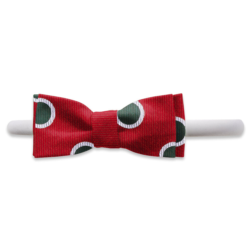 Even if don't consider yourself a fan of polka dots, it's hard not to find these big silver-rimmed green dots woven into dark red silk totally appealing - for the holidays and beyond.