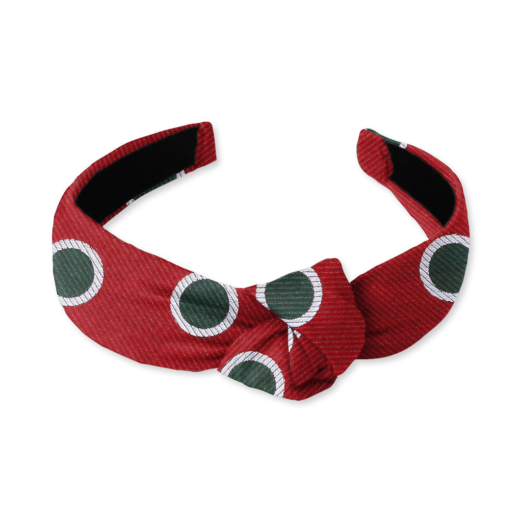 Even if don't consider yourself a fan of polka dots, it's hard not to find these big silver-rimmed green dots woven into dark red silk totally appealing - for the holidays and beyond.