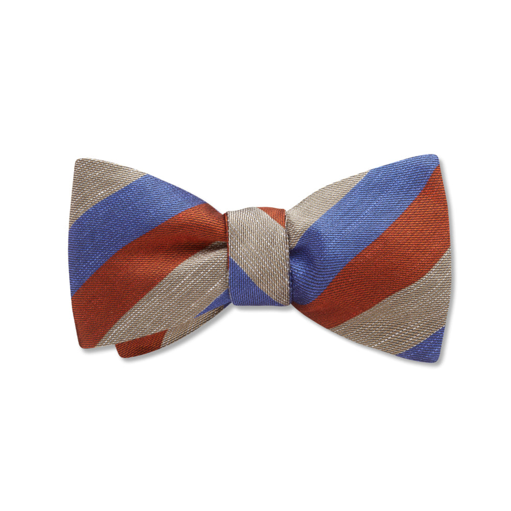Beautifully woven in silk, these stripes of copper, blue and silvery grey are sure to add some pinache to your fall wardrobe.