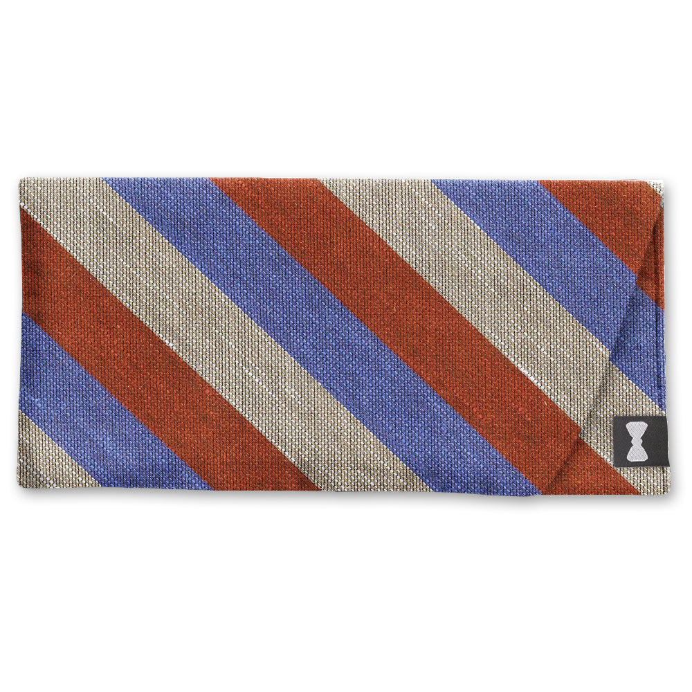 Beautifully woven in silk, these stripes of copper, blue and silvery grey are sure to add some pinache to your fall wardrobe.