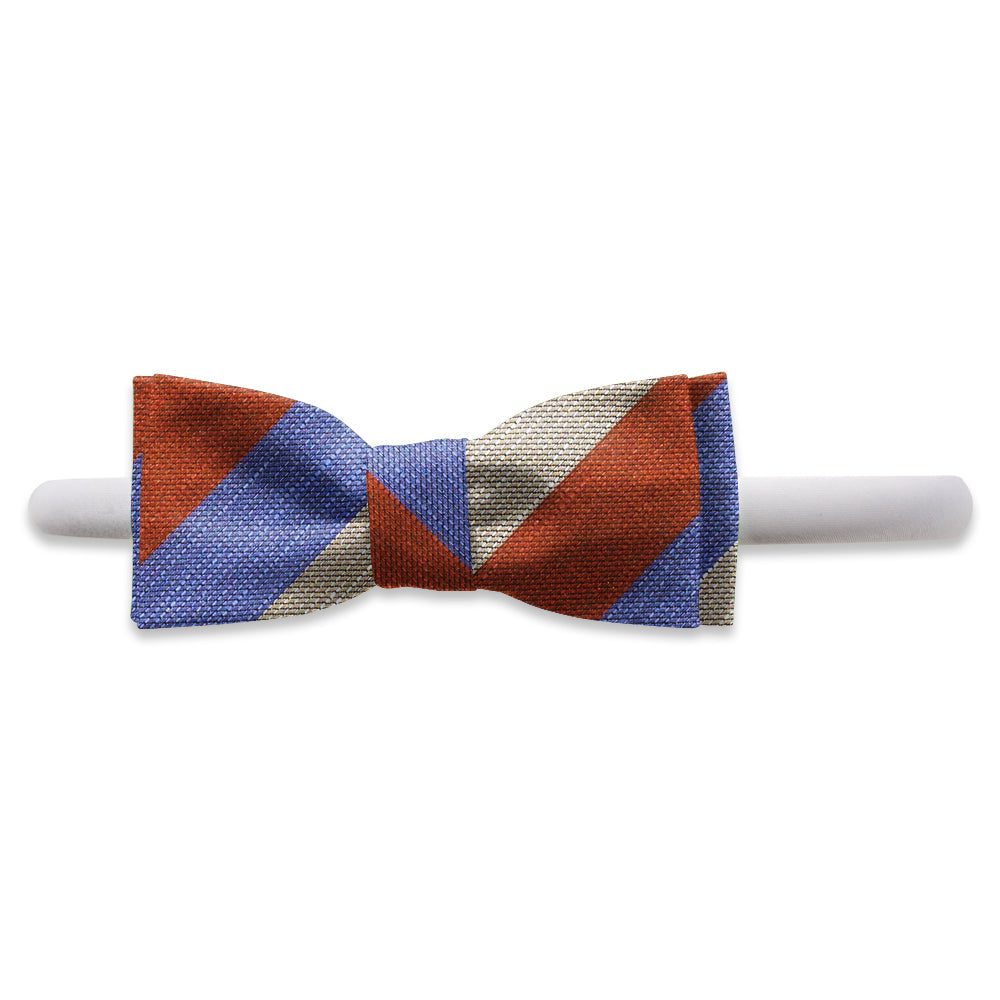 Beautifully woven in silk, these stripes of copper, blue and silvery grey are sure to add some pinache to your fall wardrobe.