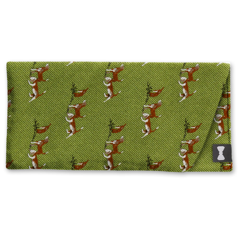 Bounding beagles appear to be hot on the trail of their quarry in this handsomely ribbed green woven silk.