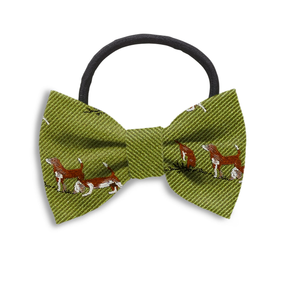 Bounding beagles appear to be hot on the trail of their quarry in this handsomely ribbed green woven silk.