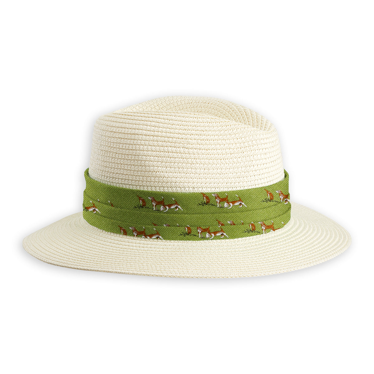 Bounding beagles appear to be hot on the trail of their quarry in this handsomely ribbed green woven silk.