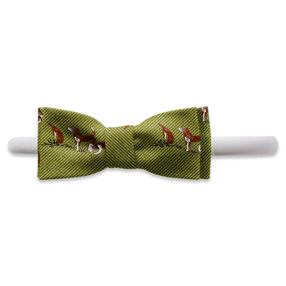 Bounding beagles appear to be hot on the trail of their quarry in this handsomely ribbed green woven silk.
