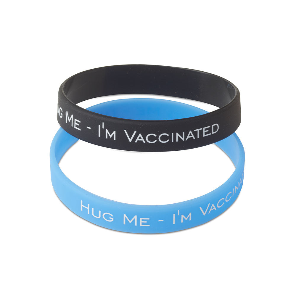 Let everybody know that you've had your shot(s) - and are ready for a hug - when you wear these totally fun rubber bracelets.