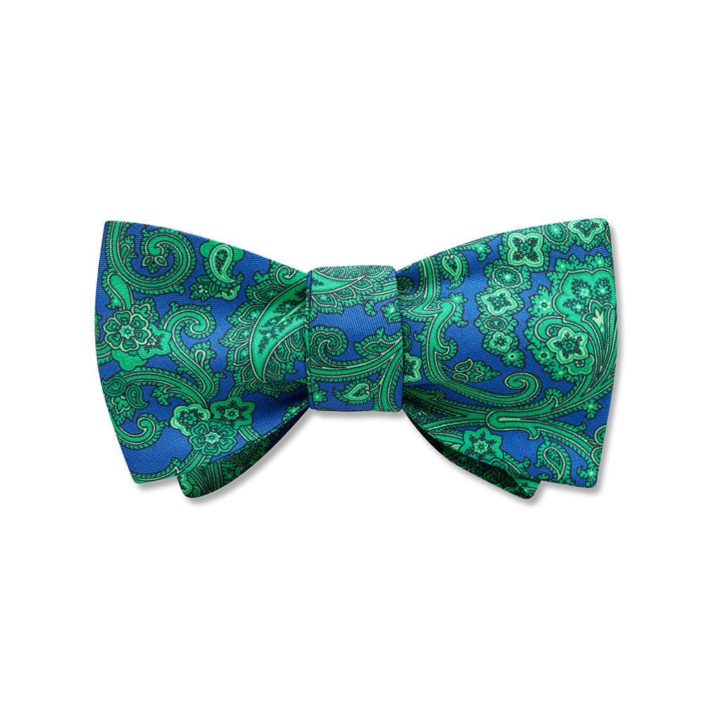 Stand out from the crowd wearing this eye-catching shade of bright blue Italian silk dancing with a fanciful floral and paisley motif in shades of green. Awesome.