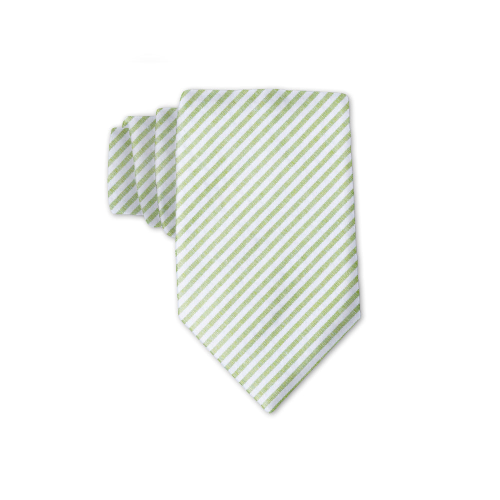 Add a cheerful note to your summer wardrobe with this light green and white striped cotton seersucker. It's a classic.