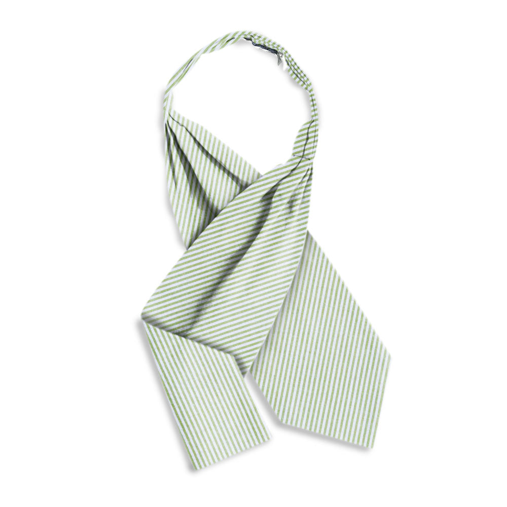 The Islamorada free-fold cravat features three stitched center pleats that allow luxurious drape in front without fabric bulk at the nape of your neck. It is completely reversible and sized for a perfect fit. May require a stick-pin. Our cravats are made to order, so please allow up to two weeks for delivery.