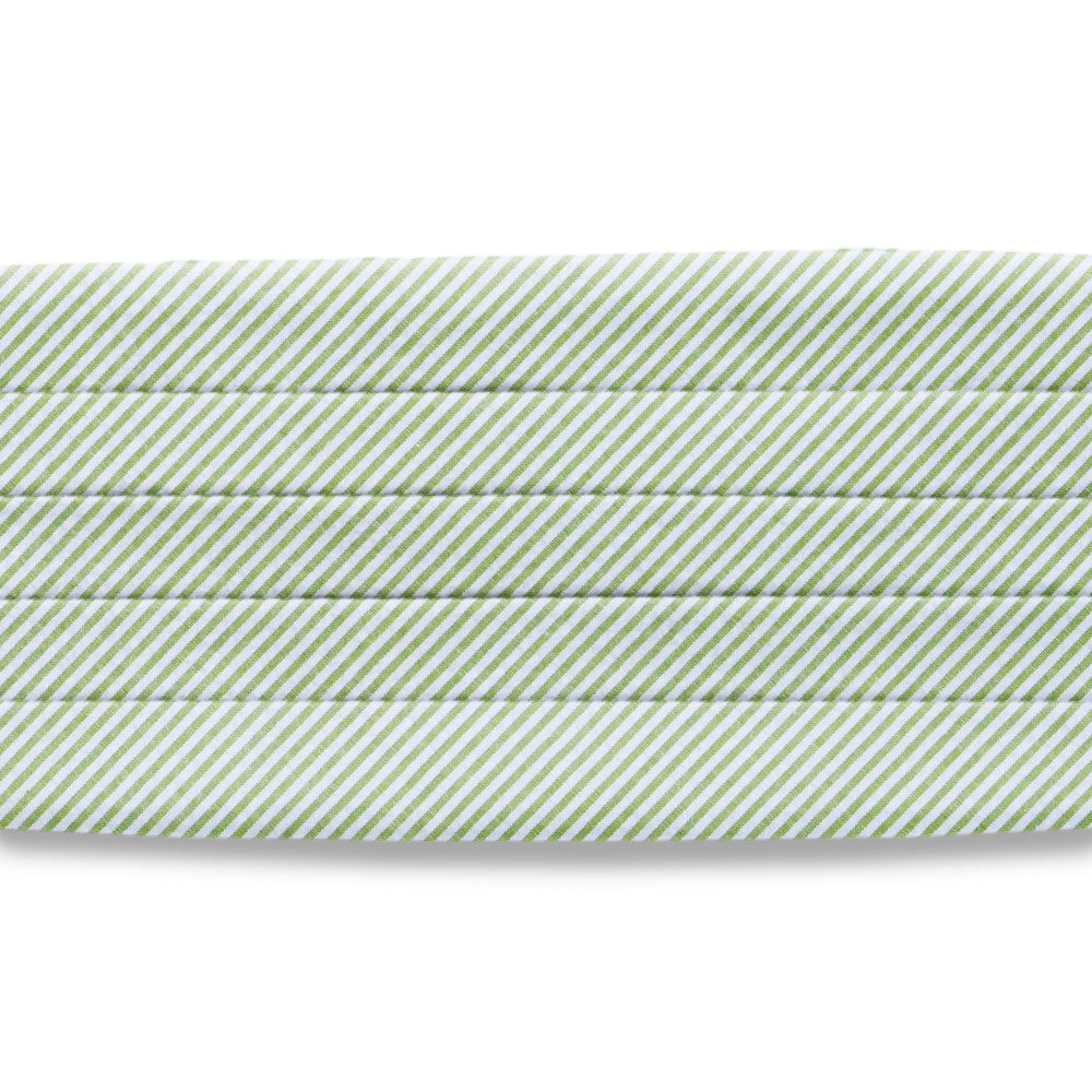 Add a cheerful note to your summer wardrobe with this light green and white striped cotton seersucker. It's a classic.