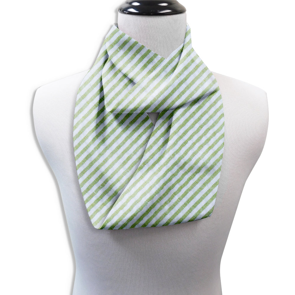 Add a cheerful note to your summer wardrobe with this light green and white striped cotton seersucker. It's a classic.