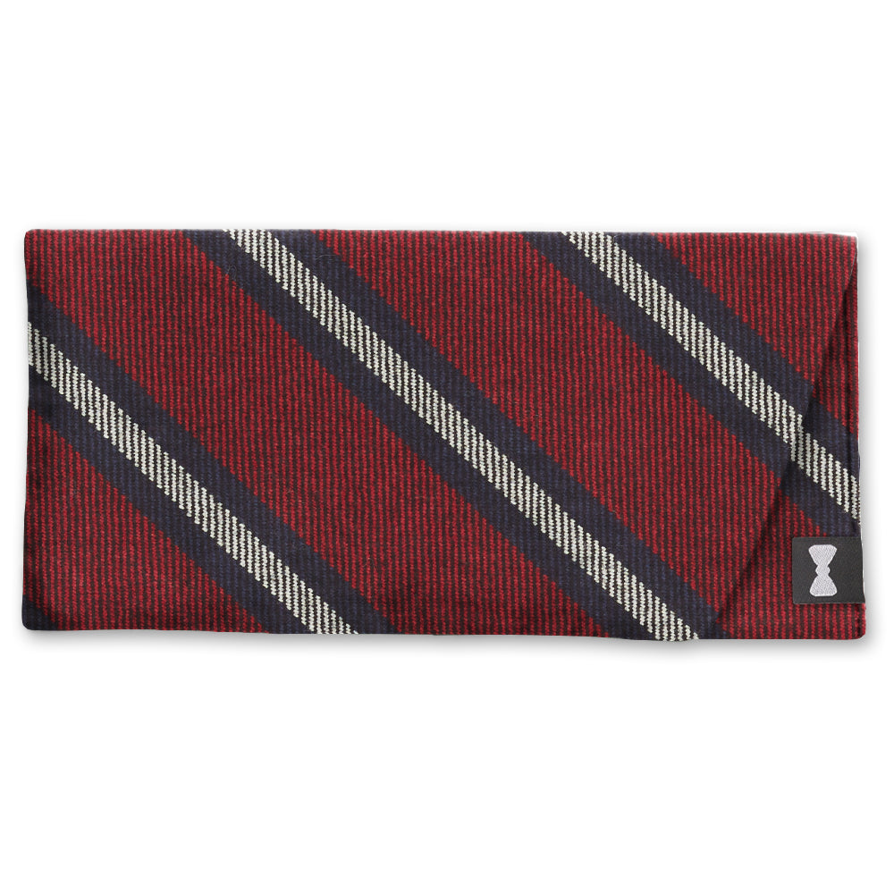 Dark red stripes interspersed with trios of navy and white woven in soft warm Italian wool are sure to become one of your cool-weather wardrobe favorites.