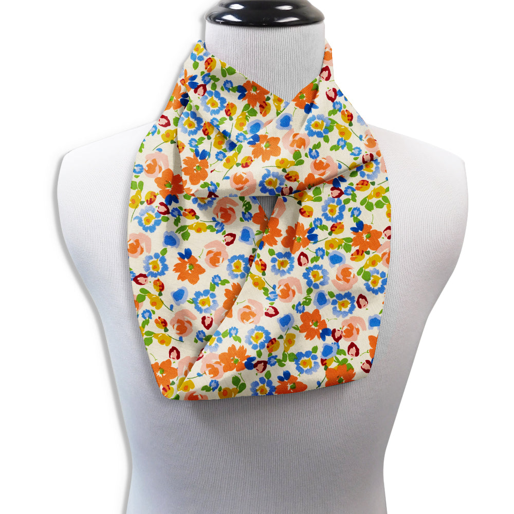 Our Beaufinity scarves are double-sided with a 58 inch circumference. Each is 6 inches wide. If you've always wanted an infinity scarf, the Jardinette Beaufinity is a great choice!