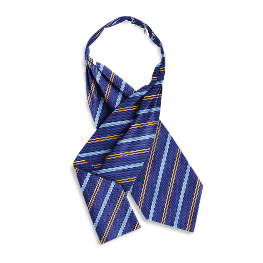 The Kennebago patterned free-fold cravat features three stitched center pleats that allow luxurious drape in front without fabric bulk at the nape of your neck. It is completely reversible and sized for a perfect fit. May require a stick-pin.