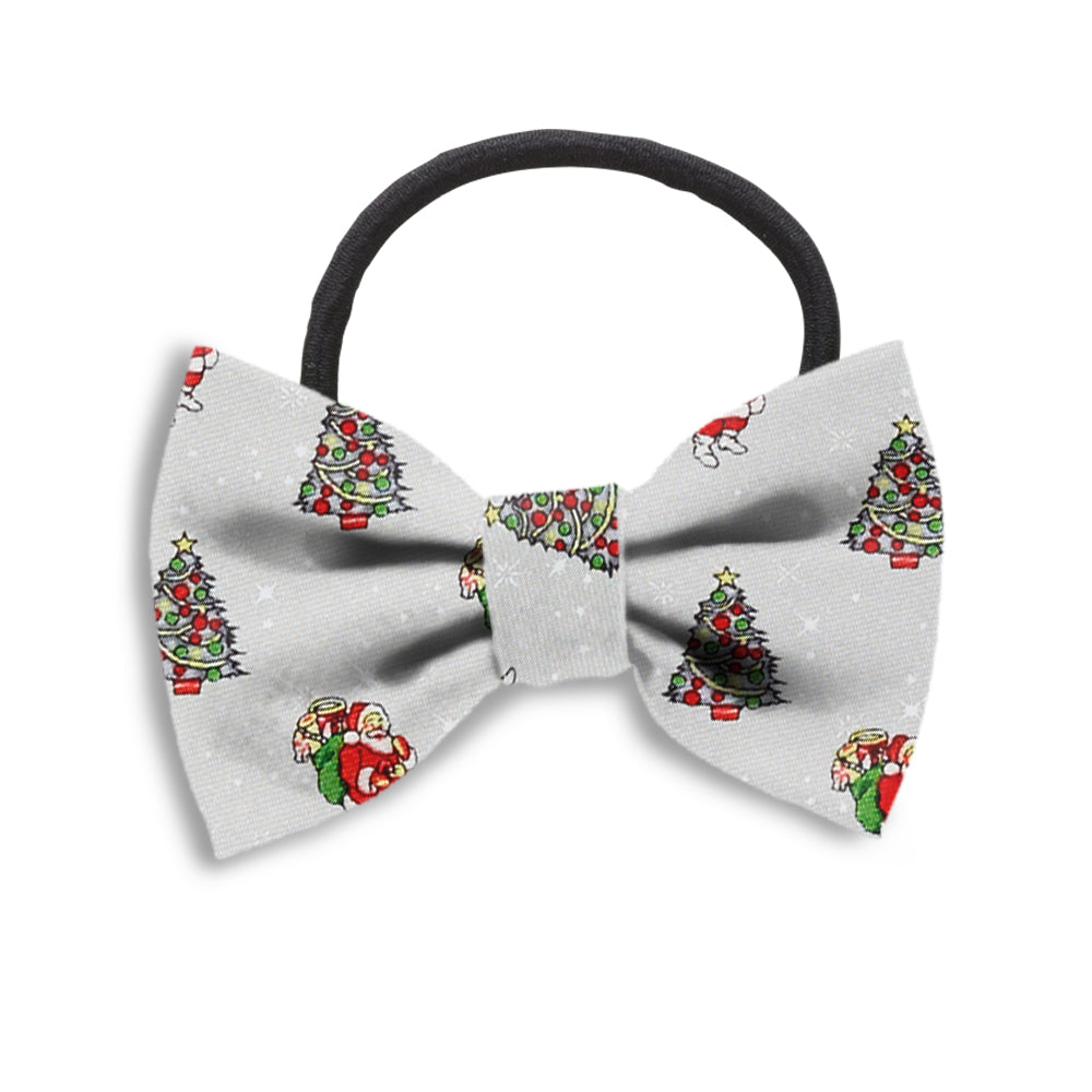 No need to leave women out of your Beau Tie family. Our hair bows are beautiful and practical - with the Kringle Silver bow measuring about 3 inches wide and attached to pony tail holder with a circumference of 4-3/4 inches.
