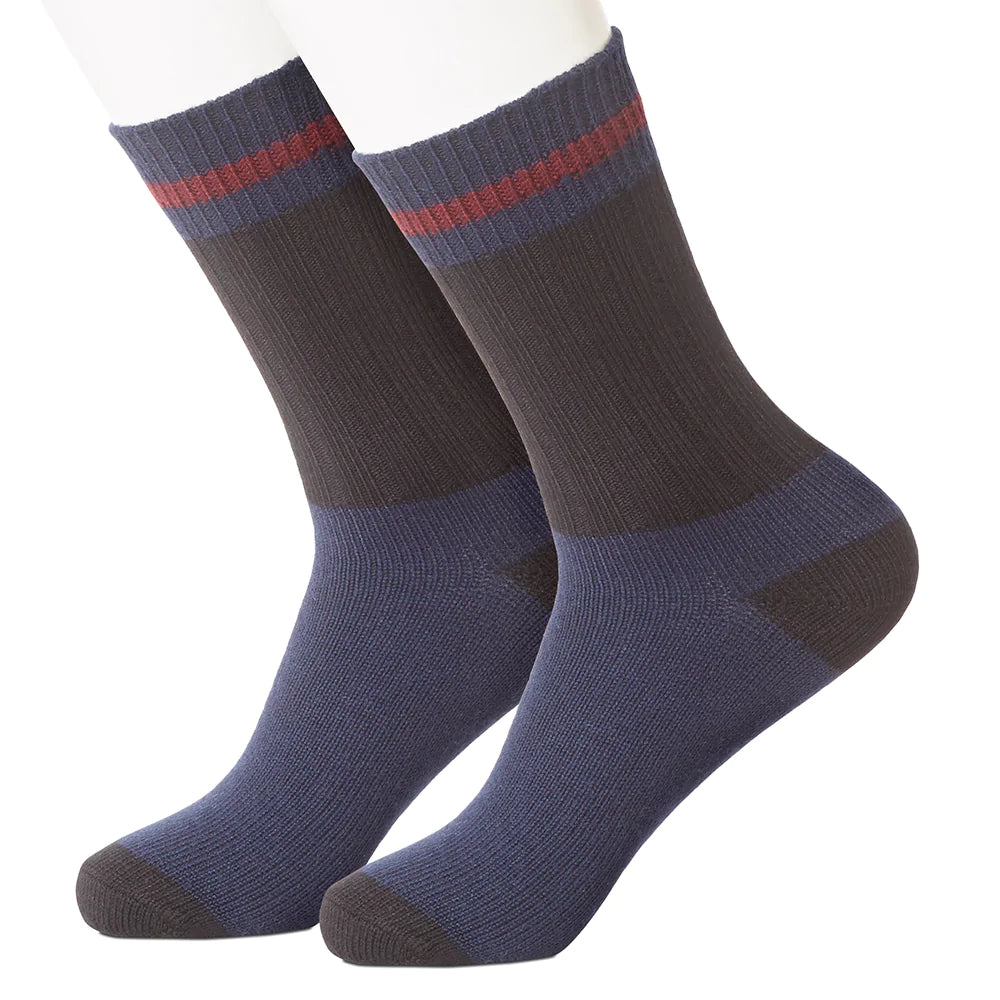 You can never have too many pairs of blue socks, and these ones, with their subtle blocks of navy, plus a slender ribbon of dark pink around the top, are sure to become favorites.