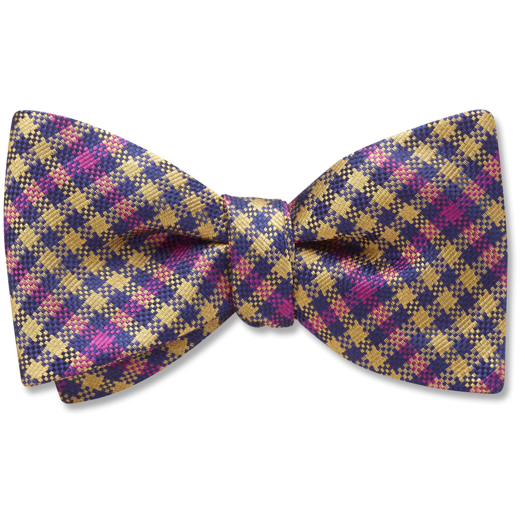 This unusual and beautiful combination of gold and purple woven in navy blue will give you a new go-to plaid. As good for the office as a night on the town.