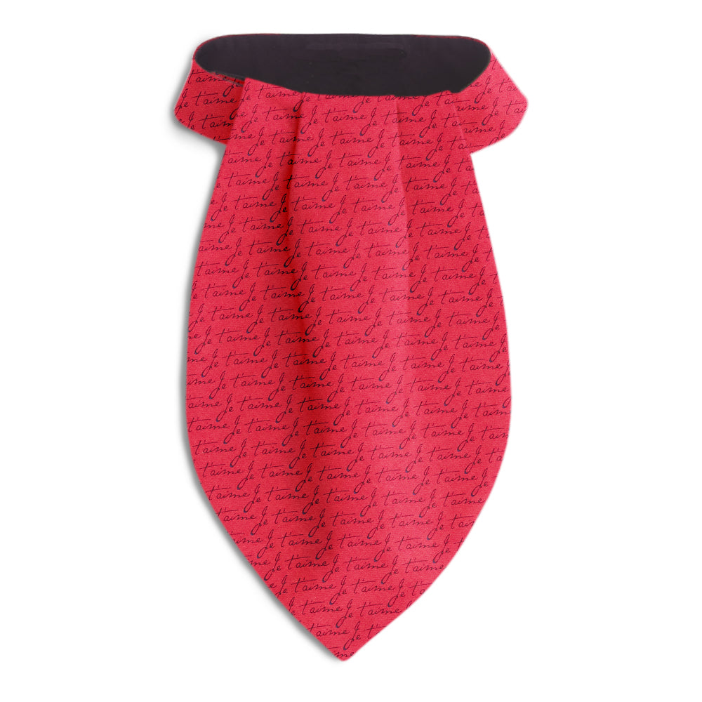 If Paris is the city of love, we'll assume that French is the language of romance. Hence this bright red silk twill with its Gallic declaration of love. Une trs belle cravate!.