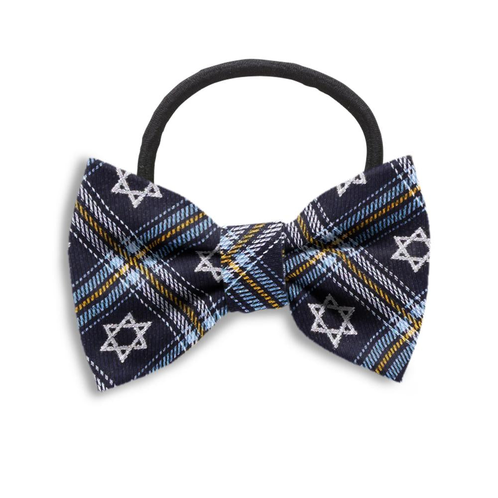 No need to leave women out of your Beau Tie family. Our hair bows are beautiful and practical - with the Magen David bow measuring about 3 inches wide and attached to pony tail holder with a circumference of 4-3/4 inches.