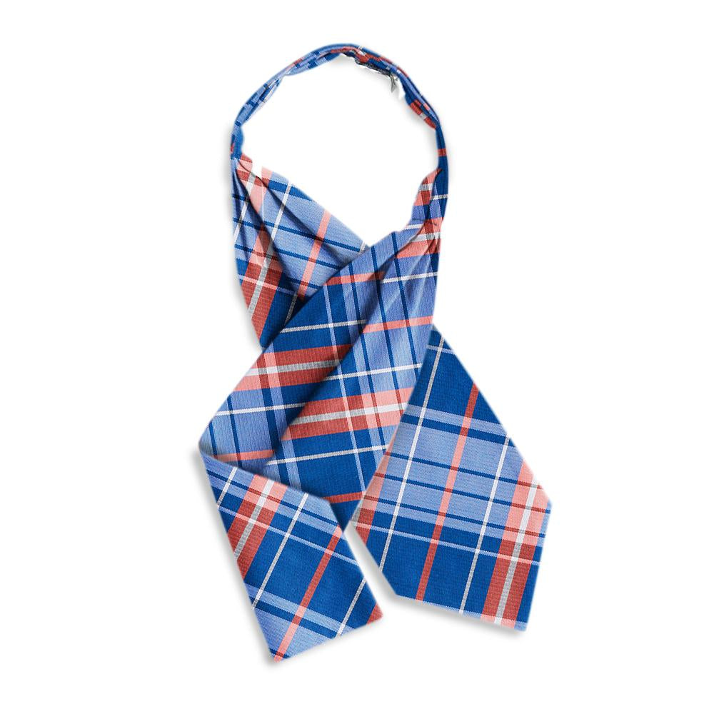 The Mansfield Horizon patterned free-fold cravat features three stitched center pleats that allow luxurious drape in front without fabric bulk at the nape of your neck. It is completely reversible and sized for a perfect fit. May require a stick-pin.