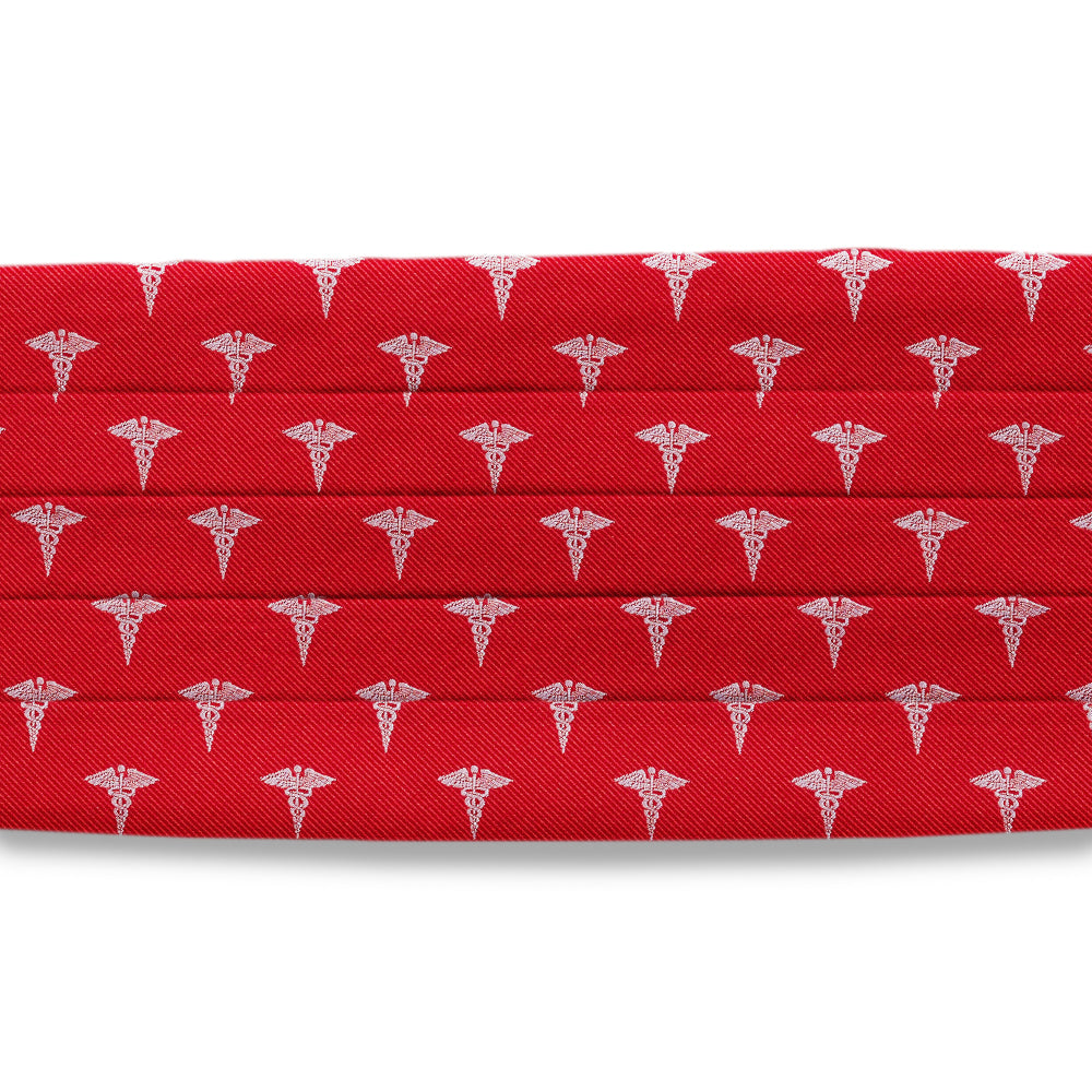 Originally the insignia of the Army Medical Corps, the caduceus is now one of the most recognized emblems related to the medical profession. They are woven here in red silk to create this handsome design.