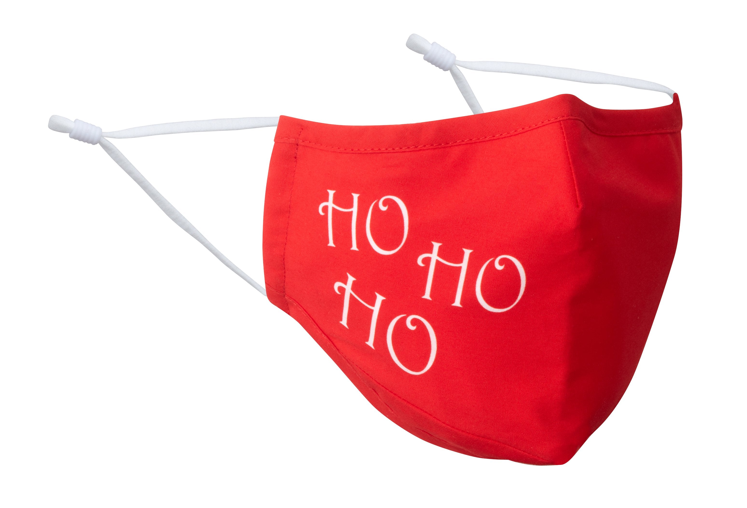 Share your holiday spirit with this bright red mask and its cheerful greeting.